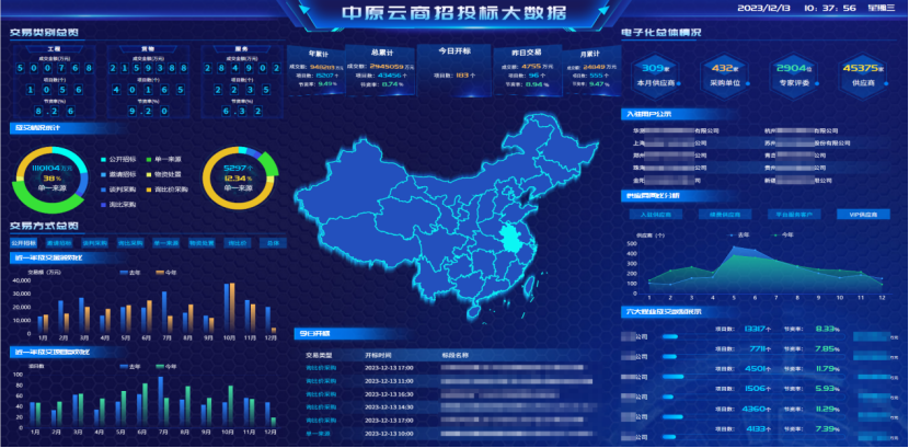 成交金額、交易方式、開標項目……交易走勢實時滾動,交易數據一目了然,這些變革得益于大數據技術與招標采購的迅速融合。