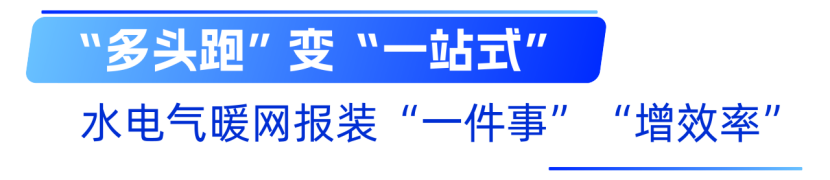 當前,市政報裝申請材料從18項精減為2項;外線工程申請材料從17項精減為6項;建設單位辦理水電氣暖網報裝接入從“多頭跑、往返跑”的11個環節變為“一件事、一次辦”。