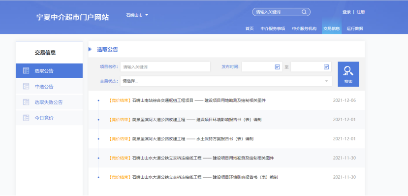 石嘴山市通過建設統一網上入口、統一身份認證、事項集中發布、服務集中提供的“中介超市”,制定行業規范制定服務指南,為項目單位和中介服務機構提供選取和承接中介服務的網上平臺,打造競爭有序、誠實守信、管理規范的中介服務環境。