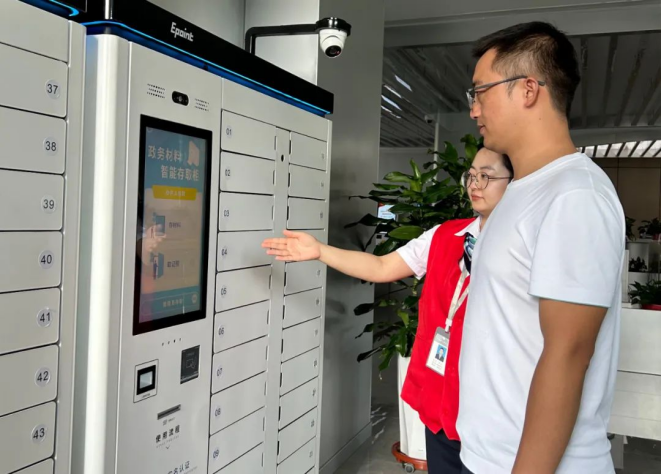 此外,為進一步提升政務服務智能化水平,拓展24小時自助服務區的服務深度,中心為自助服務區配備了智能存取柜,以便于辦事群眾放置申請材料和工作人員放置結果文件,真正實現了全過程自助辦的閉環。